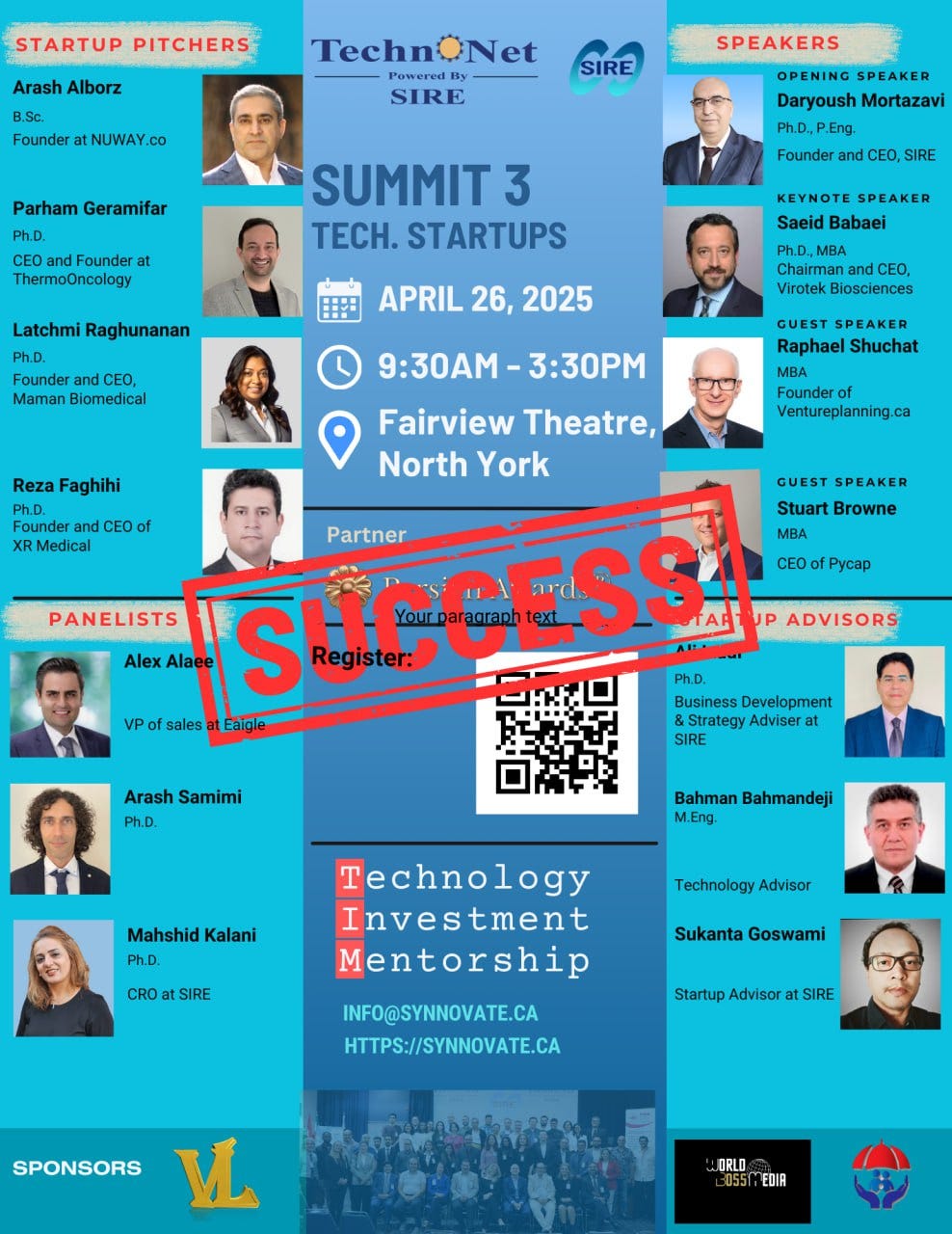 Toronto, Ontario – The excitement is building as TechnoNet Summit 3, powered by Synnovate Incubator of Research & Entrepreneurship (SIRE), prepares to take over the Fairview Theatre in North York on Saturday, April 26, 2025, from 9:30 AM to 3:30 PM. After the resounding success of previous summits, TechnoNet Summit 3 promises an even bigger stage for startups, entrepreneurs, investors, and mentors to connect, collaborate, and thrive.